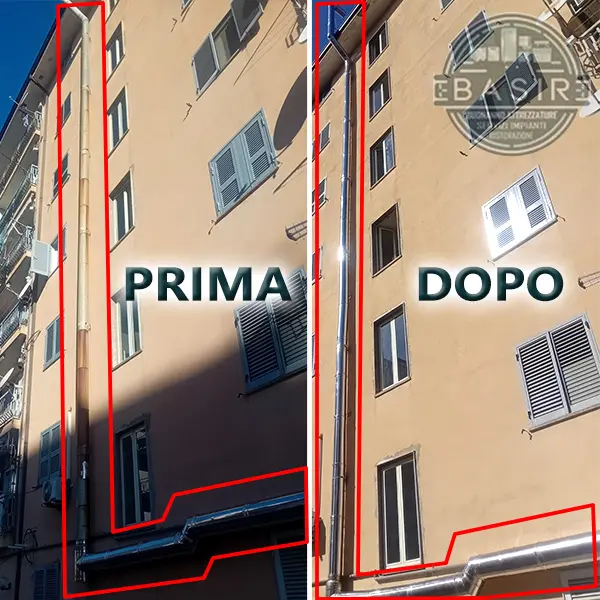 Ecco ad esempio, un’immagine che mostra il prima e dopo la sostituzione di una canna fumaria effettuata da noi (clicca per ingrandire):