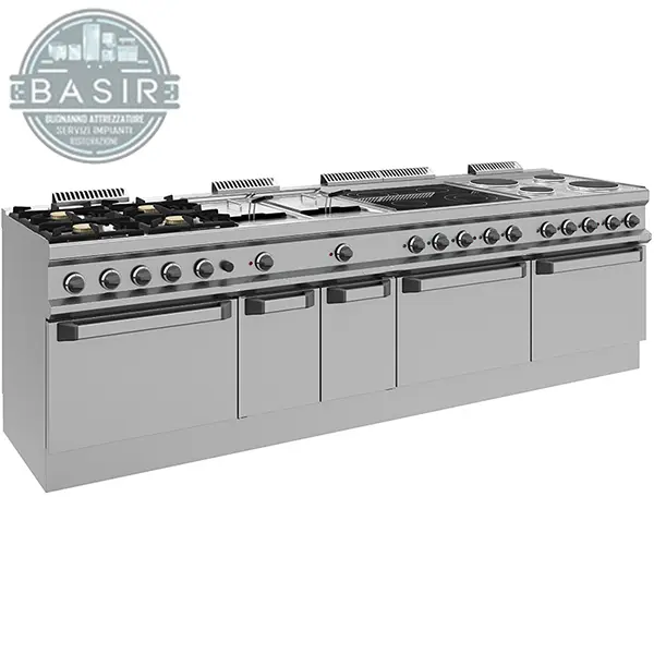 Una delle caratteristiche principali delle cucine in acciaio professionali modulari è la possibilità di integrare diverse tipologie di piani cottura, come fuochi tradizionali, piani a induzione, griglie e piastre. Questo rende l’attrezzatura estremamente flessibile, adatta a cucinare qualsiasi tipo di pietanza, dai piatti gourmet alle preparazioni più veloci tipiche di bar e fast food. Il piano a induzione, ad esempio, è ideale per chi cerca una cottura più rapida e uniforme, mentre i fuochi a gas offrono maggiore controllo e precisione nella regolazione della fiamma, adatti a preparazioni tradizionali.